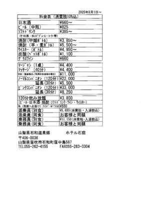 | アクセス | 東京方面: 車以外/JR中央本線石和温泉駅下車、車で5分(送迎あり) 車/首都高より中央自動車道を八王子甲府方面へ~一宮御坂IC~石和方面に出て、国道20号線を甲府方面に、広瀬交差点を右折 |