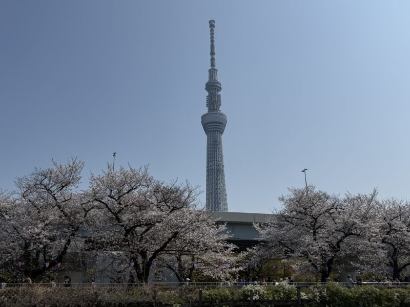 Thuyền dừng gần khu vực Tokyo Skytree để mọi người thưởng thức hoa anh đào.